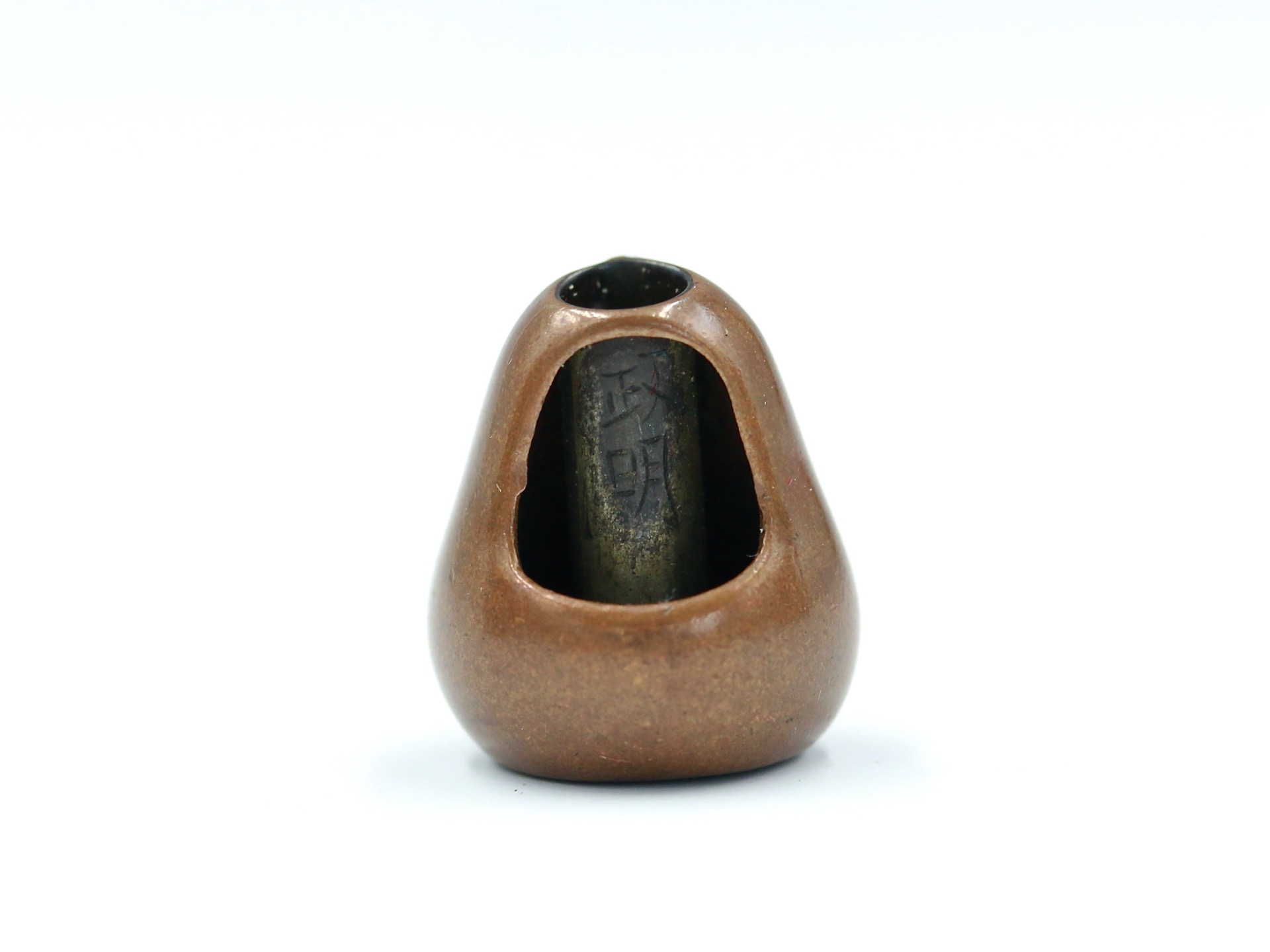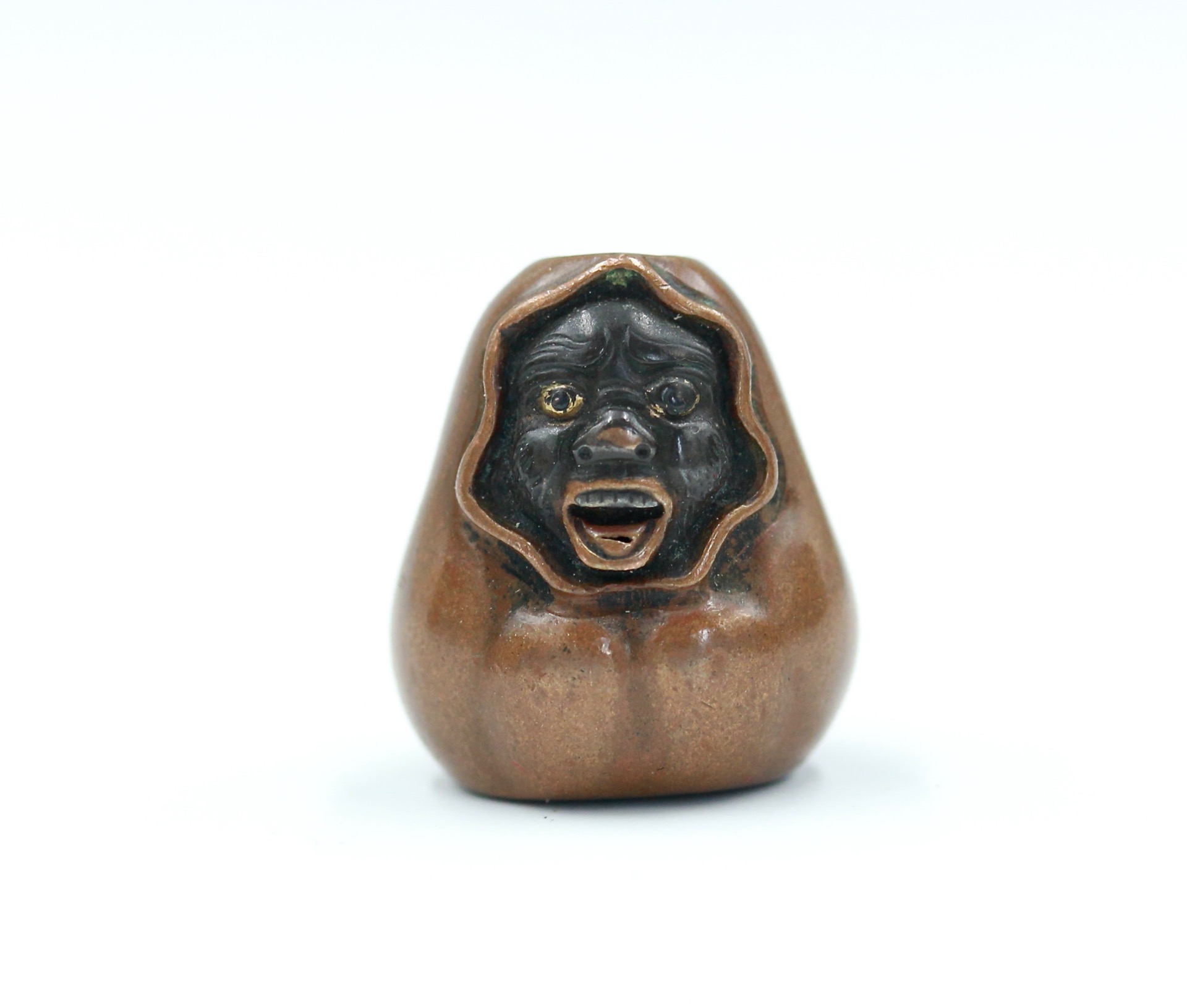 A metal ojime of Daruma as a brazier.