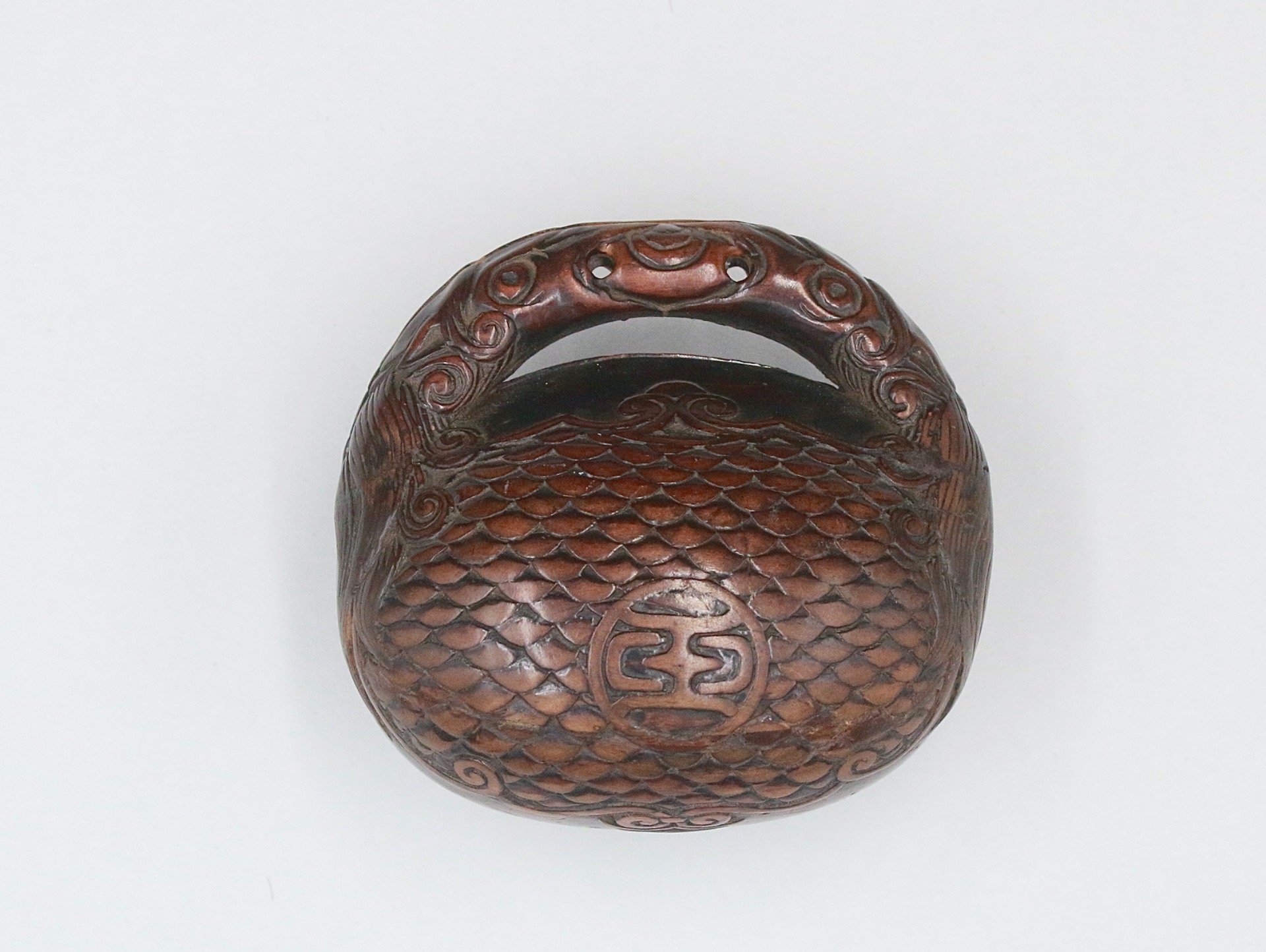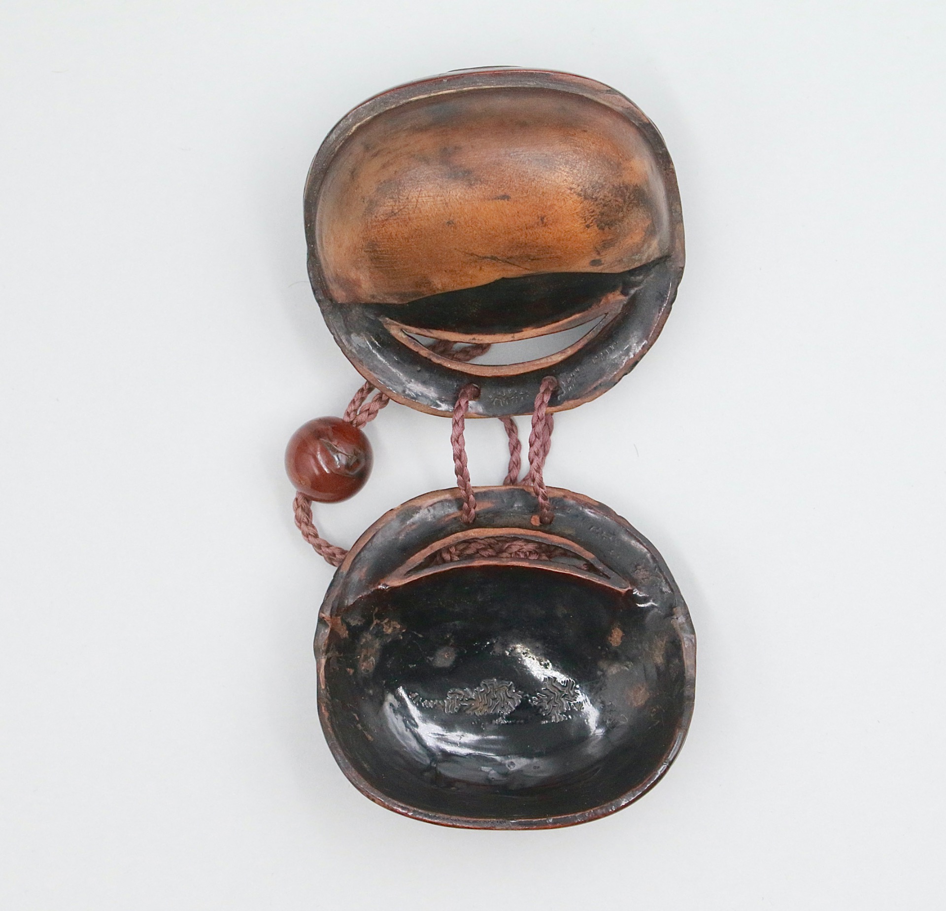An interesting wood tonkotsu, in the form of a mokugyo, consisting of two interlocking parts.