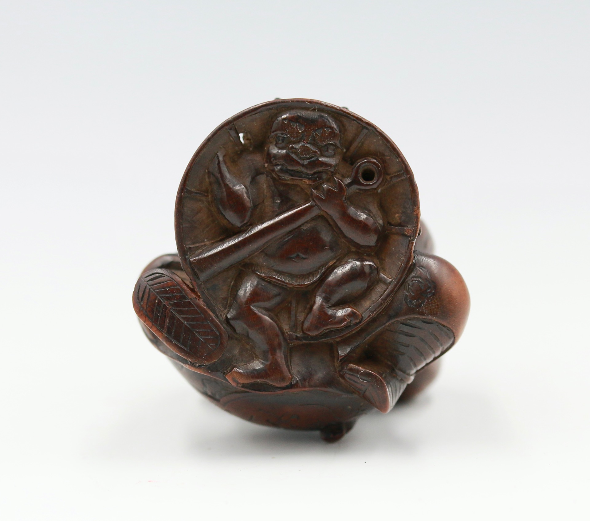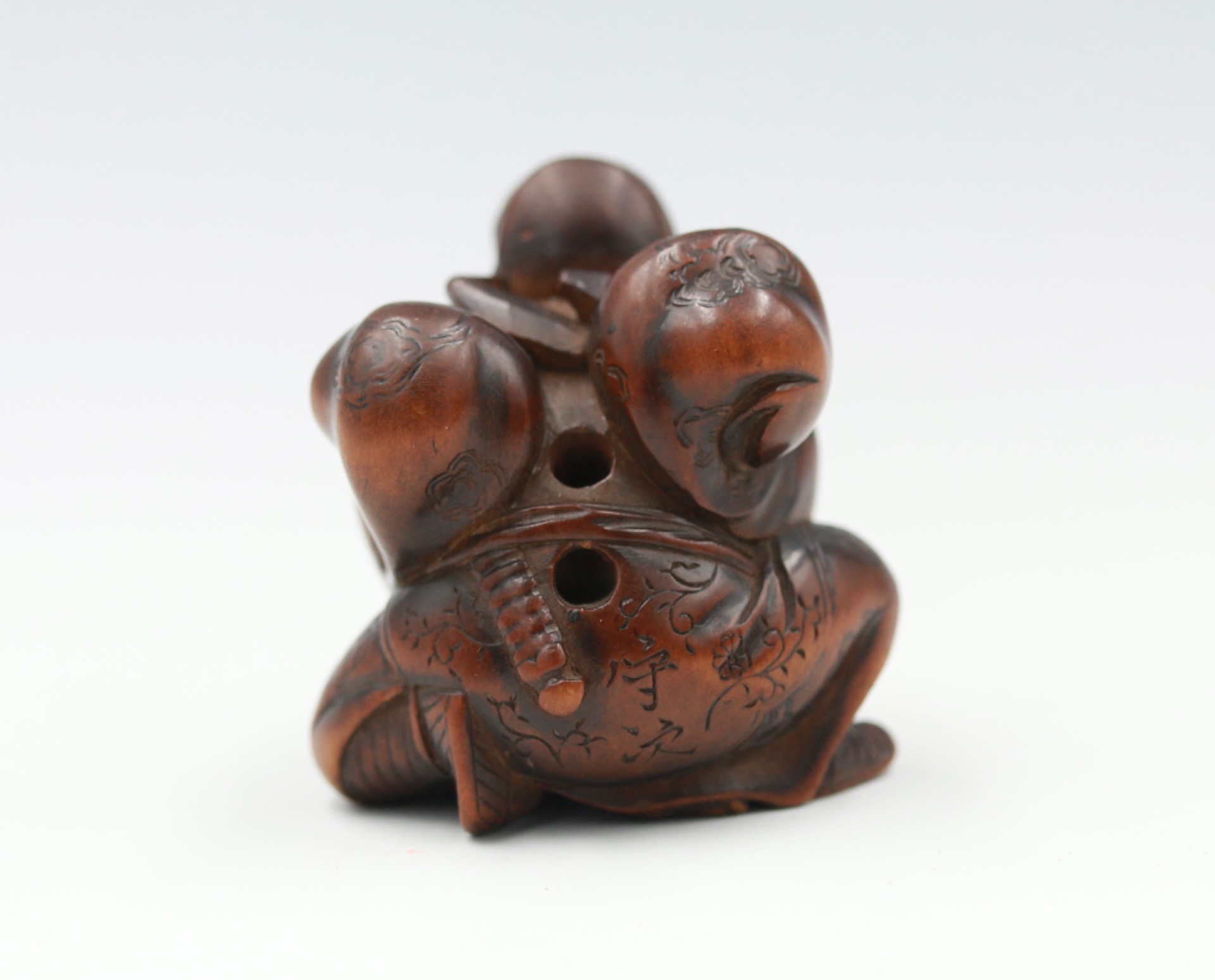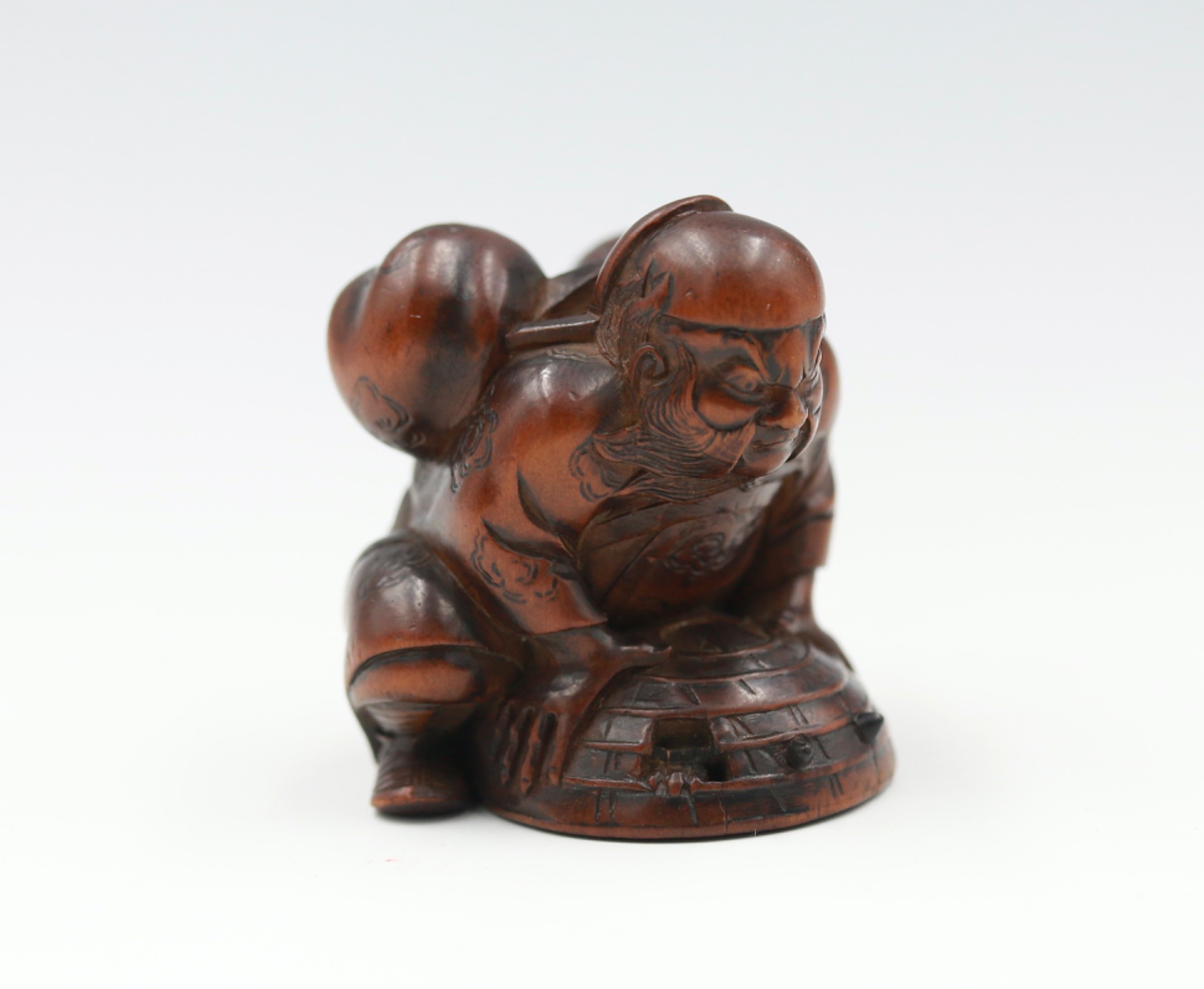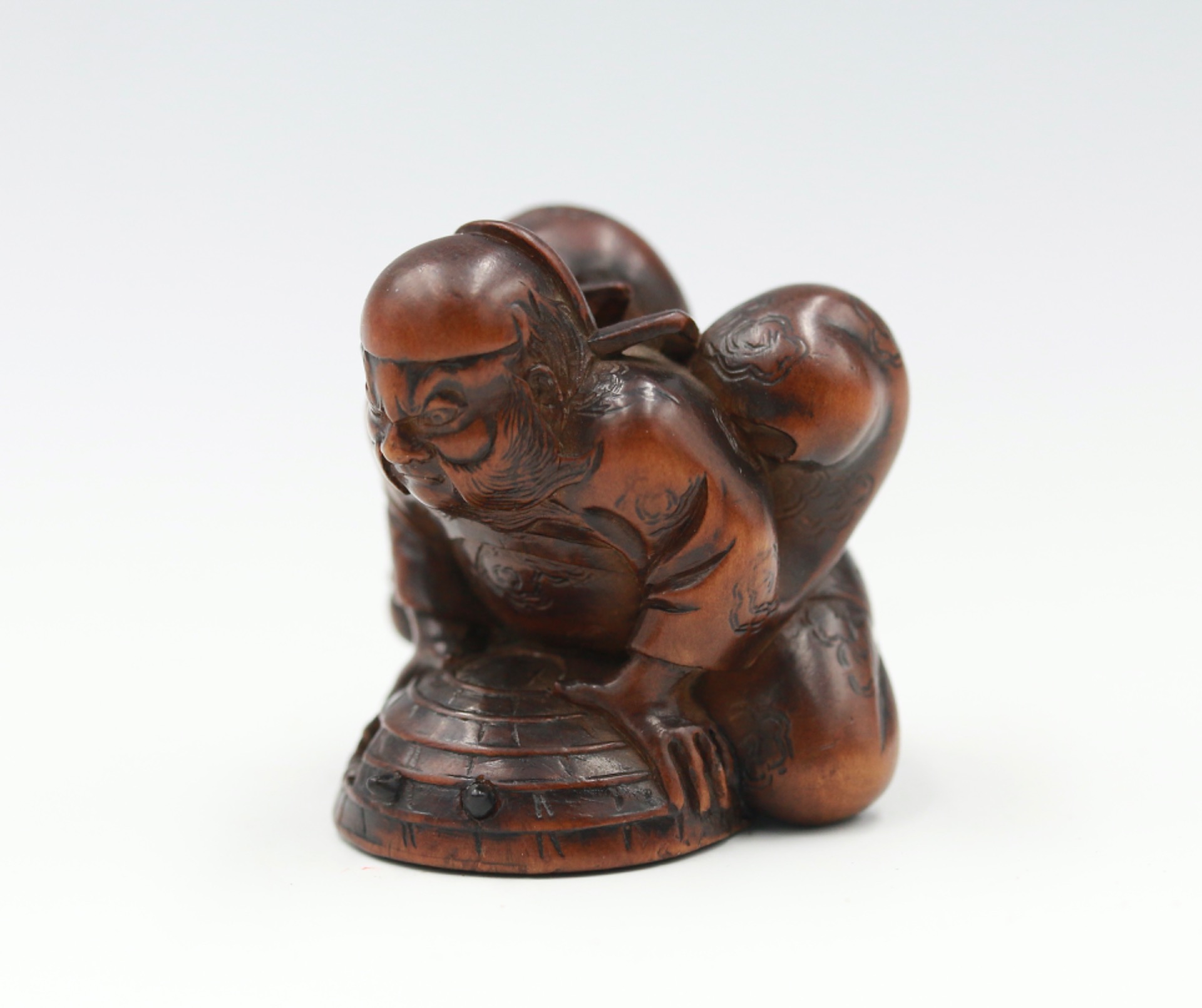 A wood group of Shoki & Oni by Moritsugu (守次).